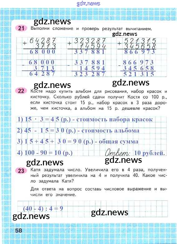 ГДЗ по Математике за 4 класс Волкова Рабочая тетрадь Школа России - Часть 1. Страницы 58