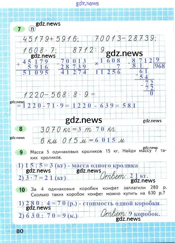 ГДЗ по Математике за 4 класс Волкова Рабочая тетрадь Школа России - Часть 1. Страницы 80