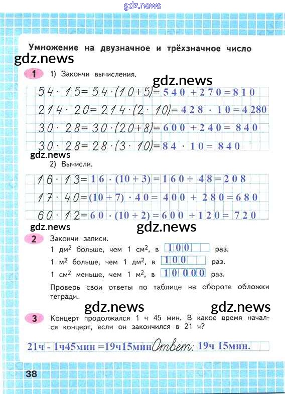 ГДЗ по Математике за 4 класс Волкова Рабочая тетрадь Школа России - Часть 2. Страницы 38