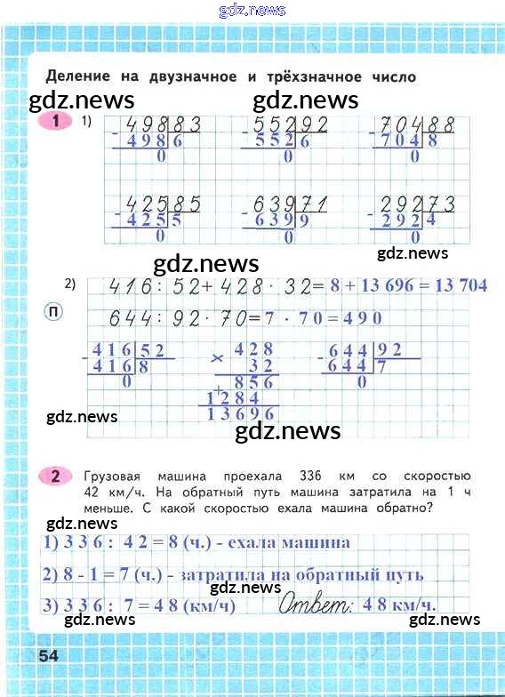 ГДЗ по Математике за 4 класс Волкова Рабочая тетрадь Школа России - Часть 2. Страницы 54