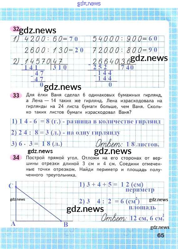 ГДЗ по Математике за 4 класс Волкова Рабочая тетрадь Школа России - Часть 2. Страницы 65