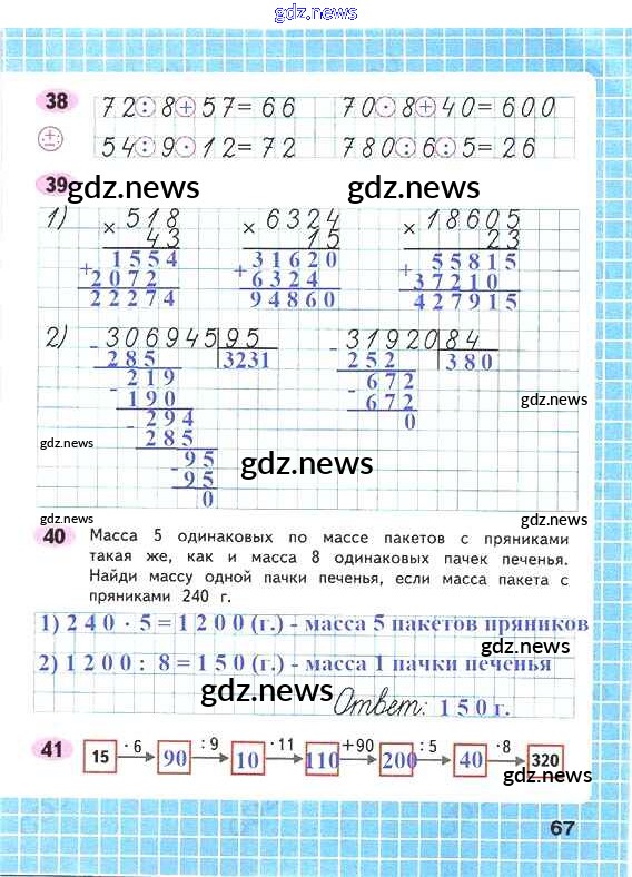 ГДЗ по Математике за 4 класс Волкова Рабочая тетрадь Школа России - Часть 2. Страницы 67