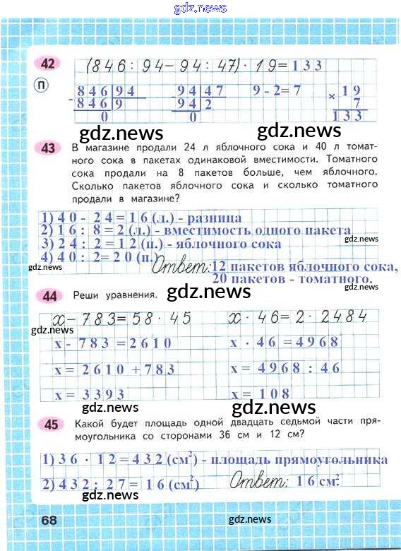 ГДЗ по Математике за 4 класс Волкова Рабочая тетрадь Школа России - Часть 2. Страницы 68