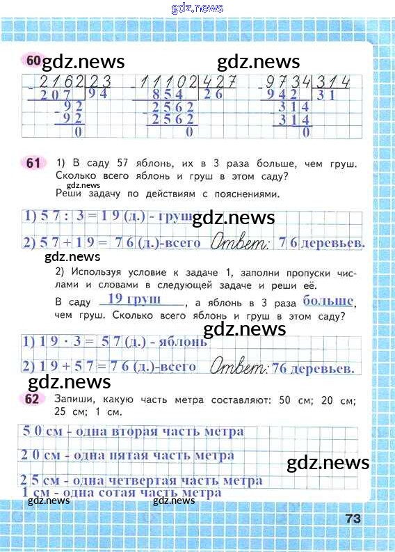 ГДЗ по Математике за 4 класс Волкова Рабочая тетрадь Школа России - Часть 2. Страницы 73