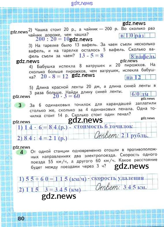 ГДЗ по Математике за 4 класс Волкова Рабочая тетрадь Школа России - Часть 2. Страницы 80