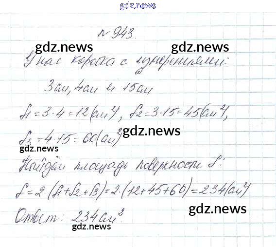Как эффективно готовиться к домашним заданиям по Математике за 5 класс: лучшие стратегии и советы на gdz.news. Здесь подготовлен Учебник Дорофеев, Шарыгин, Суворова, Бунимович, Кузнецова, Минаева, Рослова - 10.2. Параллелепипед 943 и готовые ответы к ним. Сверяй домашку и получай отличные оценки!