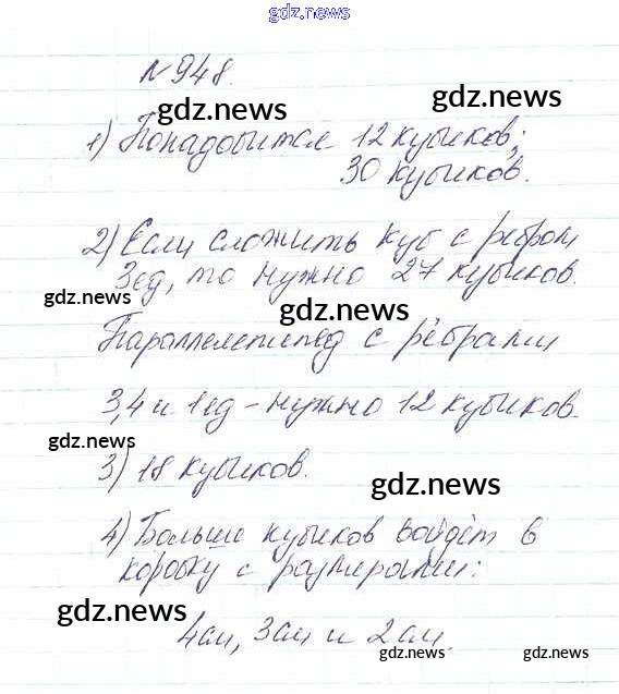 Как эффективно готовиться к домашним заданиям по Математике за 5 класс: лучшие стратегии и советы на gdz.news. Здесь подготовлен Учебник Дорофеев, Шарыгин, Суворова, Бунимович, Кузнецова, Минаева, Рослова - 10.2. Параллелепипед 948 и готовые ответы к ним. Сверяй домашку и получай отличные оценки!