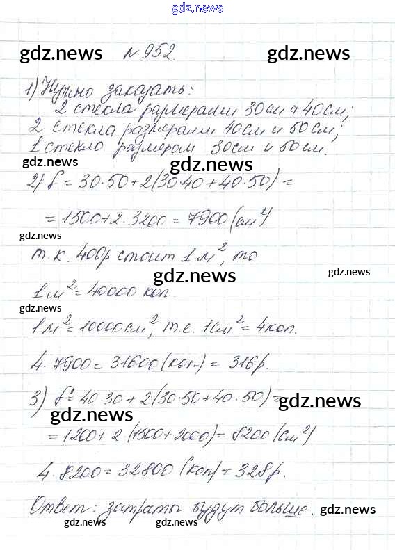 Как эффективно готовиться к домашним заданиям по Математике за 5 класс: лучшие стратегии и советы на gdz.news. Здесь подготовлен Учебник Дорофеев, Шарыгин, Суворова, Бунимович, Кузнецова, Минаева, Рослова - 10.2. Параллелепипед 952 и готовые ответы к ним. Сверяй домашку и получай отличные оценки!