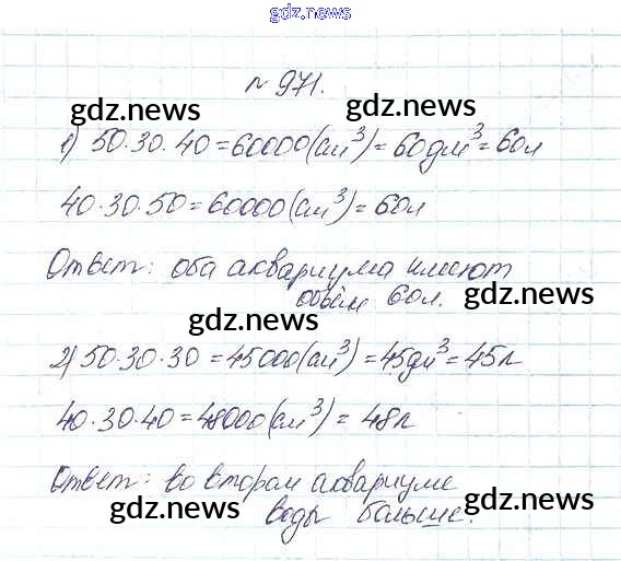 Как эффективно готовиться к домашним заданиям по Математике за 5 класс: лучшие стратегии и советы на gdz.news. Здесь подготовлен Учебник Дорофеев, Шарыгин, Суворова, Бунимович, Кузнецова, Минаева, Рослова - 10.3. Объем параллелепипеда 971 и готовые ответы к ним. Сверяй домашку и получай отличные оценки!