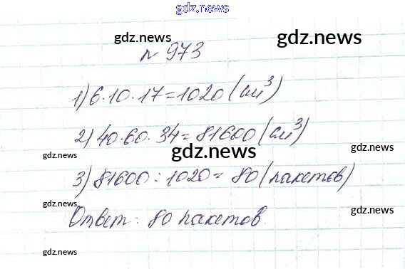 Как эффективно готовиться к домашним заданиям по Математике за 5 класс: лучшие стратегии и советы на gdz.news. Здесь подготовлен Учебник Дорофеев, Шарыгин, Суворова, Бунимович, Кузнецова, Минаева, Рослова - 10.3. Объем параллелепипеда 973 и готовые ответы к ним. Сверяй домашку и получай отличные оценки!
