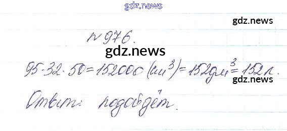 Как эффективно готовиться к домашним заданиям по Математике за 5 класс: лучшие стратегии и советы на gdz.news. Здесь подготовлен Учебник Дорофеев, Шарыгин, Суворова, Бунимович, Кузнецова, Минаева, Рослова - 10.3. Объем параллелепипеда 976 и готовые ответы к ним. Сверяй домашку и получай отличные оценки!
