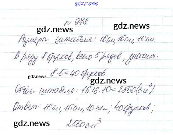 Как эффективно готовиться к домашним заданиям по Математике за 5 класс: лучшие стратегии и советы на gdz.news. Здесь подготовлен Учебник Дорофеев, Шарыгин, Суворова, Бунимович, Кузнецова, Минаева, Рослова - 10.3. Объем параллелепипеда 978 и готовые ответы к ним. Сверяй домашку и получай отличные оценки!