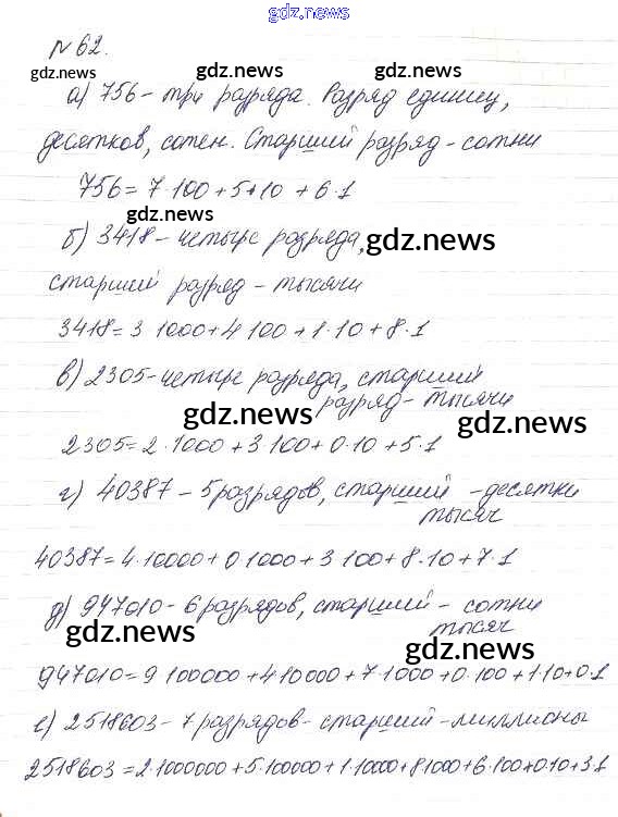 ГДЗ по Математике за 5 класс Дорофеев, Шарыгин Учебник - 2.1. Как записывают и читают натуральные числа 62