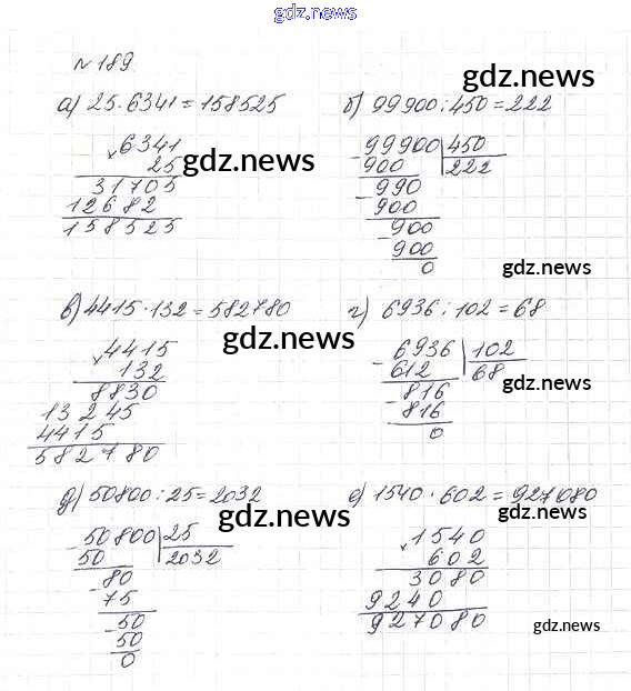 Как эффективно готовиться к домашним заданиям по Математике за 5 класс: лучшие стратегии и советы на gdz.news. Здесь подготовлен Учебник Дорофеев, Шарыгин, Суворова, Бунимович, Кузнецова, Минаева, Рослова - 3.2. Умножение и деление 189 и готовые ответы к ним. Сверяй домашку и получай отличные оценки!