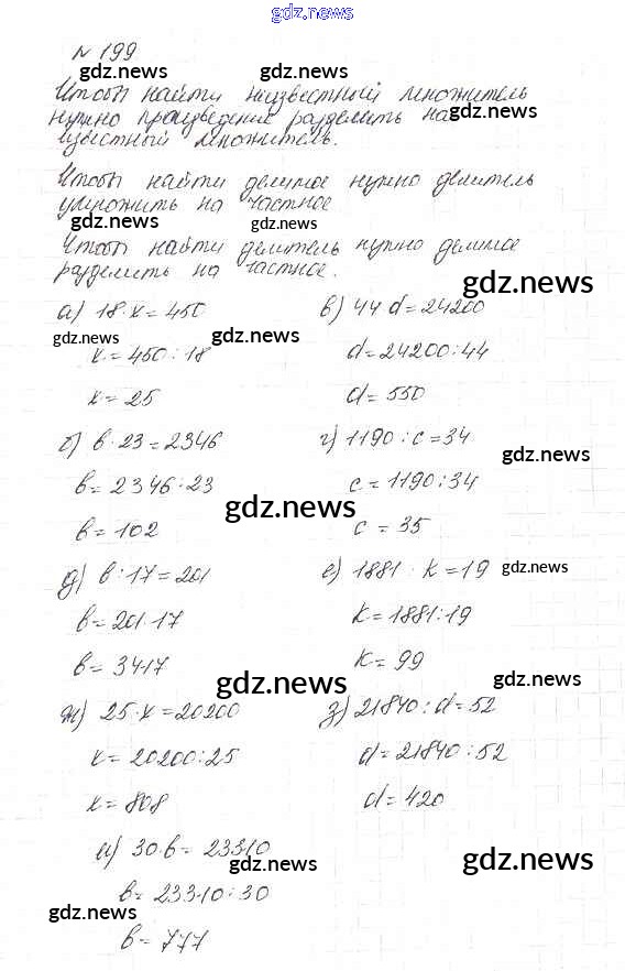 Как эффективно готовиться к домашним заданиям по Математике за 5 класс: лучшие стратегии и советы на gdz.news. Здесь подготовлен Учебник Дорофеев, Шарыгин, Суворова, Бунимович, Кузнецова, Минаева, Рослова - 3.2. Умножение и деление 199 и готовые ответы к ним. Сверяй домашку и получай отличные оценки!