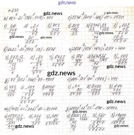 Как эффективно готовиться к домашним заданиям по Математике за 5 класс: лучшие стратегии и советы на gdz.news. Здесь подготовлен Учебник Дорофеев, Шарыгин, Суворова, Бунимович, Кузнецова, Минаева, Рослова - 3.3. Порядок действий в вычислениях 230 и готовые ответы к ним. Сверяй домашку и получай отличные оценки!