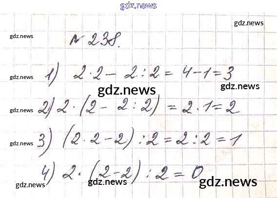 Как эффективно готовиться к домашним заданиям по Математике за 5 класс: лучшие стратегии и советы на gdz.news. Здесь подготовлен Учебник Дорофеев, Шарыгин, Суворова, Бунимович, Кузнецова, Минаева, Рослова - 3.3. Порядок действий в вычислениях 238 и готовые ответы к ним. Сверяй домашку и получай отличные оценки!