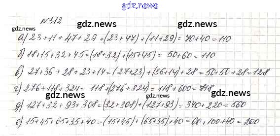 ГДЗ по Математике за 5 класс Дорофеев, Шарыгин Учебник - 4.1. Свойства сложения и умножения 312
