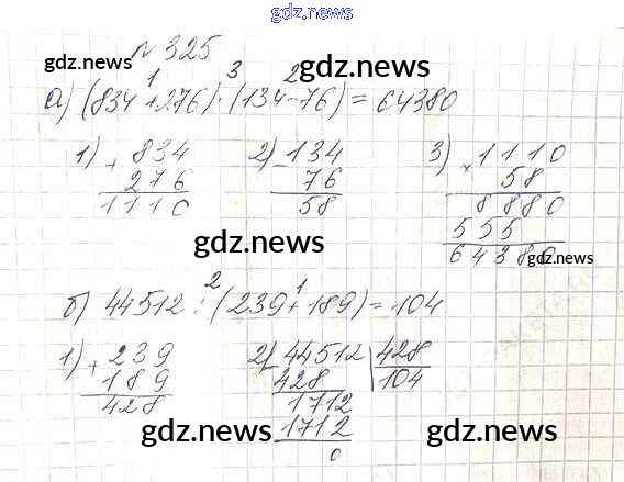 Как эффективно готовиться к домашним заданиям по Математике за 5 класс: лучшие стратегии и советы на gdz.news. Здесь подготовлен Учебник Дорофеев, Шарыгин, Суворова, Бунимович, Кузнецова, Минаева, Рослова - 4.1. Свойства сложения и умножения 325 и готовые ответы к ним. Сверяй домашку и получай отличные оценки!