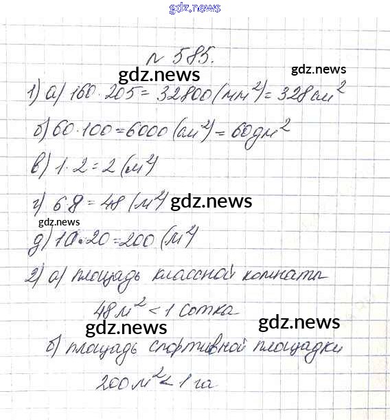 Как эффективно готовиться к домашним заданиям по Математике за 5 класс: лучшие стратегии и советы на gdz.news. Здесь подготовлен Учебник Дорофеев, Шарыгин, Суворова, Бунимович, Кузнецова, Минаева, Рослова - 7.4. Площадь прямоугольника 585 и готовые ответы к ним. Сверяй домашку и получай отличные оценки!