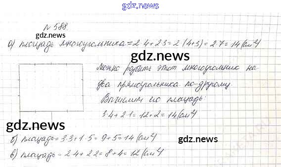Как эффективно готовиться к домашним заданиям по Математике за 5 класс: лучшие стратегии и советы на gdz.news. Здесь подготовлен Учебник Дорофеев, Шарыгин, Суворова, Бунимович, Кузнецова, Минаева, Рослова - 7.4. Площадь прямоугольника 588 и готовые ответы к ним. Сверяй домашку и получай отличные оценки!