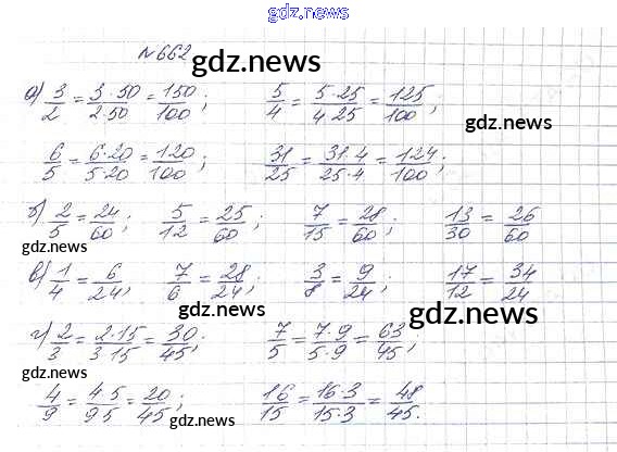 ГДЗ по Математике за 5 класс Дорофеев, Шарыгин Учебник - 8.3. Основное свойство дроби 662