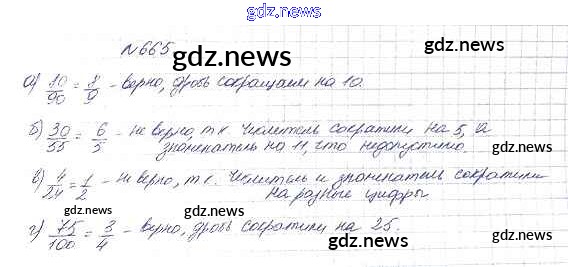 Как эффективно готовиться к домашним заданиям по Математике за 5 класс: лучшие стратегии и советы на gdz.news. Здесь подготовлен Учебник Дорофеев, Шарыгин, Суворова, Бунимович, Кузнецова, Минаева, Рослова - 8.3. Основное свойство дроби 665 и готовые ответы к ним. Сверяй домашку и получай отличные оценки!