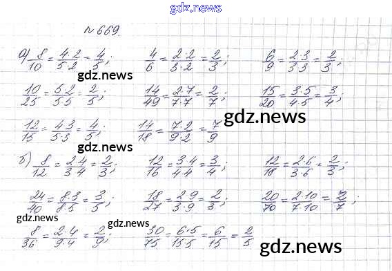 Как эффективно готовиться к домашним заданиям по Математике за 5 класс: лучшие стратегии и советы на gdz.news. Здесь подготовлен Учебник Дорофеев, Шарыгин, Суворова, Бунимович, Кузнецова, Минаева, Рослова - 8.3. Основное свойство дроби 669 и готовые ответы к ним. Сверяй домашку и получай отличные оценки!