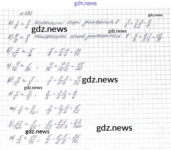 Как эффективно готовиться к домашним заданиям по Математике за 5 класс: лучшие стратегии и советы на gdz.news. Здесь подготовлен Учебник Дорофеев, Шарыгин, Суворова, Бунимович, Кузнецова, Минаева, Рослова - 8.4. Приведение дробей к общему знаменателю 692 и готовые ответы к ним. Сверяй домашку и получай отличные оценки!
