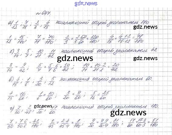 Как эффективно готовиться к домашним заданиям по Математике за 5 класс: лучшие стратегии и советы на gdz.news. Здесь подготовлен Учебник Дорофеев, Шарыгин, Суворова, Бунимович, Кузнецова, Минаева, Рослова - 8.4. Приведение дробей к общему знаменателю 697 и готовые ответы к ним. Сверяй домашку и получай отличные оценки!