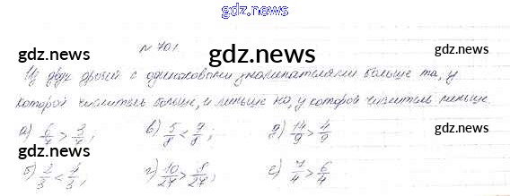 Как эффективно готовиться к домашним заданиям по Математике за 5 класс: лучшие стратегии и советы на gdz.news. Здесь подготовлен Учебник Дорофеев, Шарыгин, Суворова, Бунимович, Кузнецова, Минаева, Рослова - 8.5. Сравнение дробей 701 и готовые ответы к ним. Сверяй домашку и получай отличные оценки!