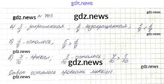 Как эффективно готовиться к домашним заданиям по Математике за 5 класс: лучшие стратегии и советы на gdz.news. Здесь подготовлен Учебник Дорофеев, Шарыгин, Суворова, Бунимович, Кузнецова, Минаева, Рослова - 8.5. Сравнение дробей 703 и готовые ответы к ним. Сверяй домашку и получай отличные оценки!