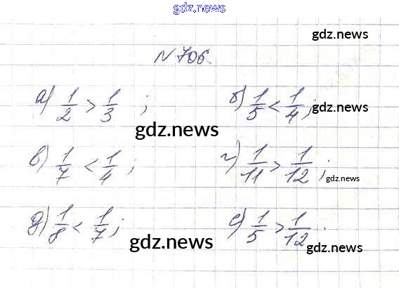 Как эффективно готовиться к домашним заданиям по Математике за 5 класс: лучшие стратегии и советы на gdz.news. Здесь подготовлен Учебник Дорофеев, Шарыгин, Суворова, Бунимович, Кузнецова, Минаева, Рослова - 8.5. Сравнение дробей 706 и готовые ответы к ним. Сверяй домашку и получай отличные оценки!