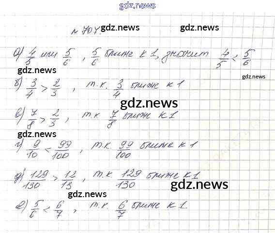 Как эффективно готовиться к домашним заданиям по Математике за 5 класс: лучшие стратегии и советы на gdz.news. Здесь подготовлен Учебник Дорофеев, Шарыгин, Суворова, Бунимович, Кузнецова, Минаева, Рослова - 8.5. Сравнение дробей 707 и готовые ответы к ним. Сверяй домашку и получай отличные оценки!