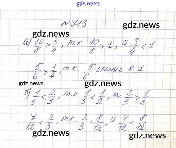 Как эффективно готовиться к домашним заданиям по Математике за 5 класс: лучшие стратегии и советы на gdz.news. Здесь подготовлен Учебник Дорофеев, Шарыгин, Суворова, Бунимович, Кузнецова, Минаева, Рослова - 8.5. Сравнение дробей 713 и готовые ответы к ним. Сверяй домашку и получай отличные оценки!