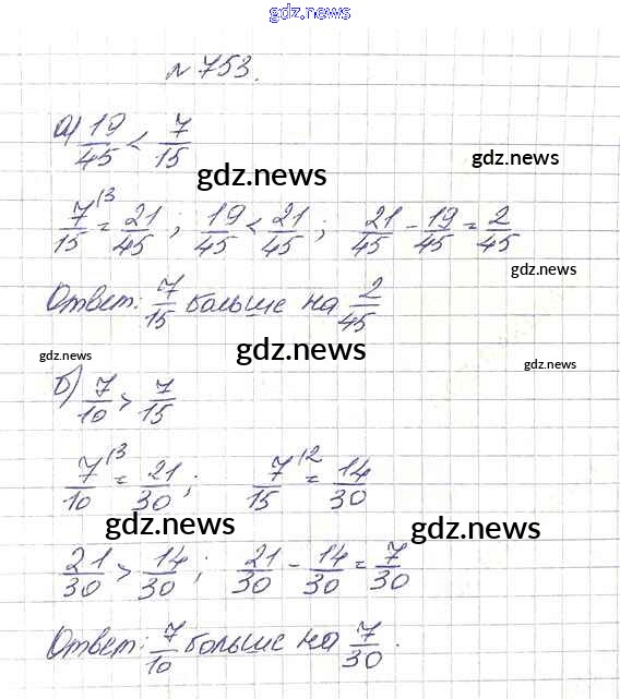 Как эффективно готовиться к домашним заданиям по Математике за 5 класс: лучшие стратегии и советы на gdz.news. Здесь подготовлен Учебник Дорофеев, Шарыгин, Суворова, Бунимович, Кузнецова, Минаева, Рослова - 9.1. Сложение и вычитание дробей 753 и готовые ответы к ним. Сверяй домашку и получай отличные оценки!