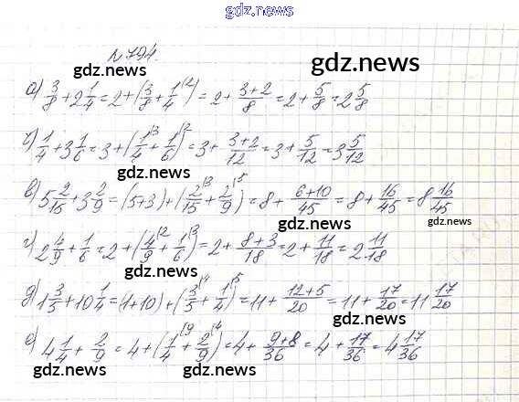 Как эффективно готовиться к домашним заданиям по Математике за 5 класс: лучшие стратегии и советы на gdz.news. Здесь подготовлен Учебник Дорофеев, Шарыгин, Суворова, Бунимович, Кузнецова, Минаева, Рослова - 9.3. Сложение и вычитание смешанных дробей 794 и готовые ответы к ним. Сверяй домашку и получай отличные оценки!