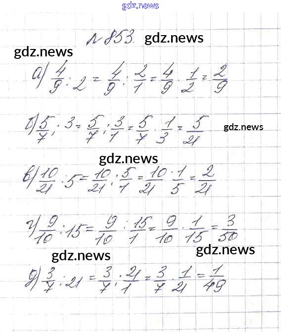 Как эффективно готовиться к домашним заданиям по Математике за 5 класс: лучшие стратегии и советы на gdz.news. Здесь подготовлен Учебник Дорофеев, Шарыгин, Суворова, Бунимович, Кузнецова, Минаева, Рослова - 9.5. Деление дробей 853 и готовые ответы к ним. Сверяй домашку и получай отличные оценки!