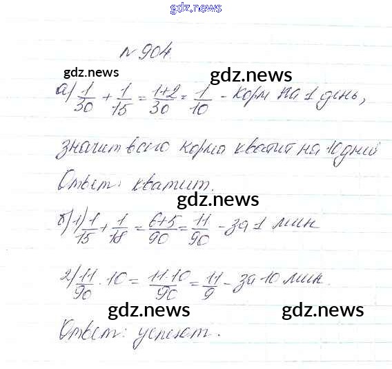 ГДЗ по Математике за 5 класс Дорофеев, Шарыгин Учебник - 9.7. Задачи на совместную работу 904