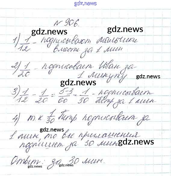 ГДЗ по Математике за 5 класс Дорофеев, Шарыгин Учебник - 9.7. Задачи на совместную работу 906