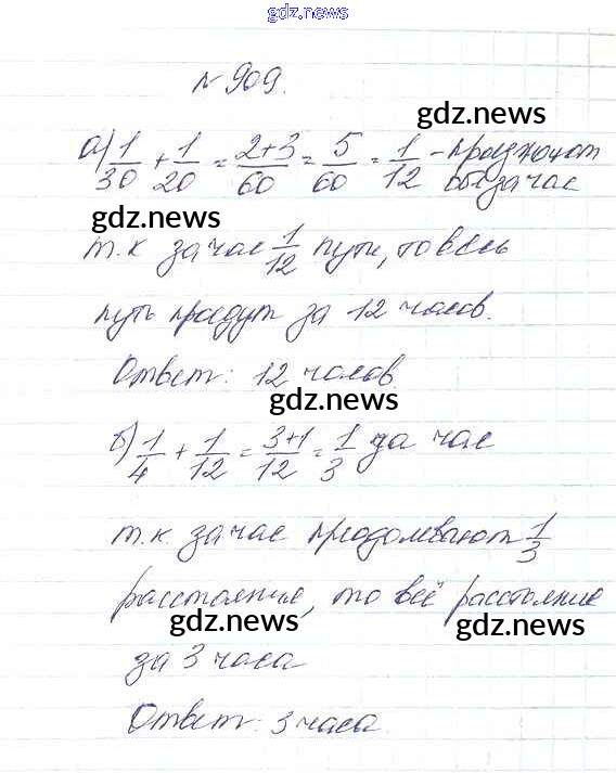 Как эффективно готовиться к домашним заданиям по Математике за 5 класс: лучшие стратегии и советы на gdz.news. Здесь подготовлен Учебник Дорофеев, Шарыгин, Суворова, Бунимович, Кузнецова, Минаева, Рослова - 9.7. Задачи на совместную работу 909 и готовые ответы к ним. Сверяй домашку и получай отличные оценки!