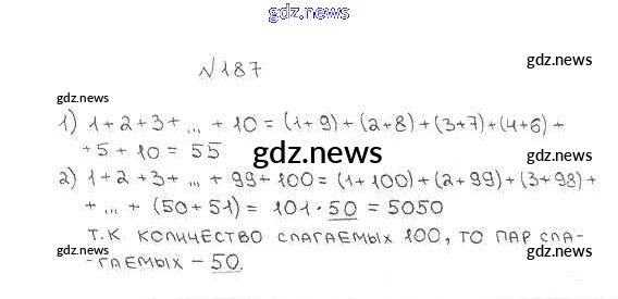 ГДЗ по Математике за 5 класс Мерзляк, Полонский Учебник Алгоритм успеха - § 7. Сложение натуральных чисел. Свойства сложения 187
