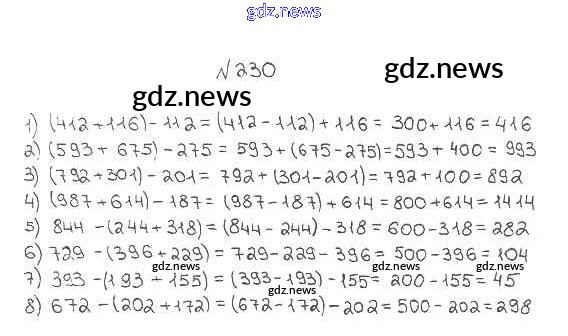 Как эффективно готовиться к домашним заданиям по Математике за 5 класс: лучшие стратегии и советы на gdz.news. Здесь подготовлен Учебник Мерзляк, Полонский, Якир Алгоритм успеха - §8. Вычитание натуральных чисел 230 и готовые ответы к ним. Сверяй домашку и получай отличные оценки!