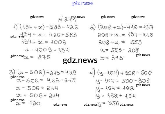 Как эффективно готовиться к домашним заданиям по Математике за 5 класс: лучшие стратегии и советы на gdz.news. Здесь подготовлен Учебник Мерзляк, Полонский, Якир Алгоритм успеха - §10. Уравнение 271 и готовые ответы к ним. Сверяй домашку и получай отличные оценки!