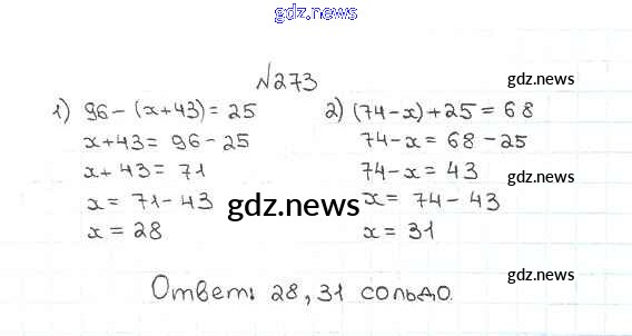 Как эффективно готовиться к домашним заданиям по Математике за 5 класс: лучшие стратегии и советы на gdz.news. Здесь подготовлен Учебник Мерзляк, Полонский, Якир Алгоритм успеха - §10. Уравнение 273 и готовые ответы к ним. Сверяй домашку и получай отличные оценки!