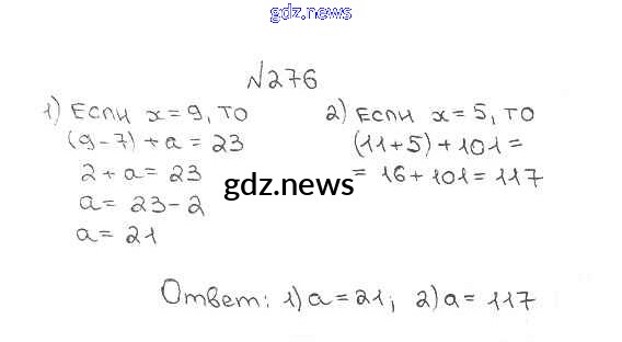 Как эффективно готовиться к домашним заданиям по Математике за 5 класс: лучшие стратегии и советы на gdz.news. Здесь подготовлен Учебник Мерзляк, Полонский, Якир Алгоритм успеха - §10. Уравнение 276 и готовые ответы к ним. Сверяй домашку и получай отличные оценки!