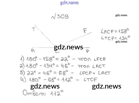 Как эффективно готовиться к домашним заданиям по Математике за 5 класс: лучшие стратегии и советы на gdz.news. Здесь подготовлен Учебник Мерзляк, Полонский, Якир Алгоритм успеха - §12. Виды углов. Измерение углов 309 и готовые ответы к ним. Сверяй домашку и получай отличные оценки!