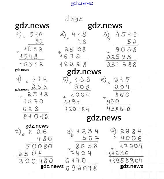 Как эффективно готовиться к домашним заданиям по Математике за 5 класс: лучшие стратегии и советы на gdz.news. Здесь подготовлен Учебник Мерзляк, Полонский, Якир Алгоритм успеха - §16. Умножение. Переместительное свойство умножения 385 и готовые ответы к ним. Сверяй домашку и получай отличные оценки!