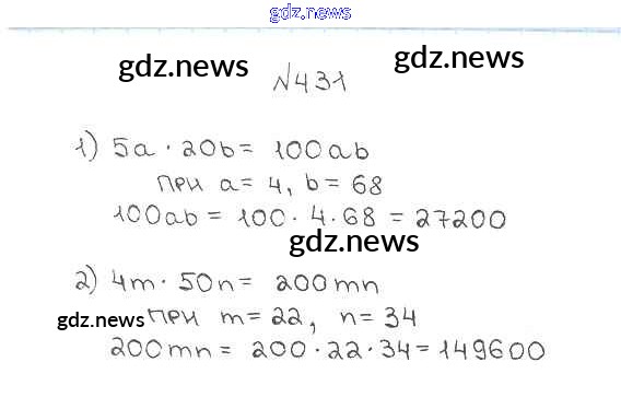 ГДЗ по Математике за 5 класс Мерзляк, Полонский Учебник Алгоритм успеха - §17. Сочетательное и распределительное свойства умножения 431