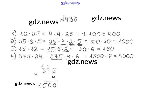 ГДЗ по Математике за 5 класс Мерзляк, Полонский Учебник Алгоритм успеха - §17. Сочетательное и распределительное свойства умножения 436